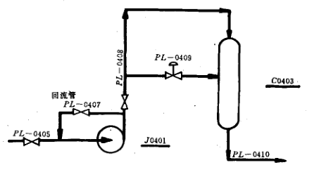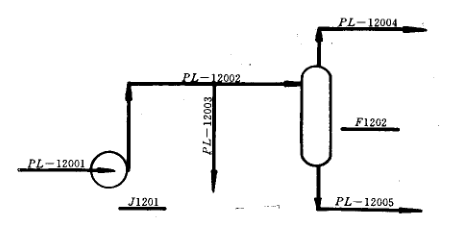 7、連通兩根管道的旁路管(不是控制閥的旁路)、安全閥進出口的旁路管以及設備、管道的回流管均要編管道號,如圖5-8泵的回流管。