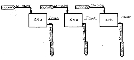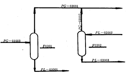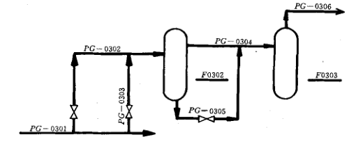 4、帶系列號的管道號類似上述規定,但不表示出輔助物料、公用物料的分配和匯集總管,如圖6-2所示。