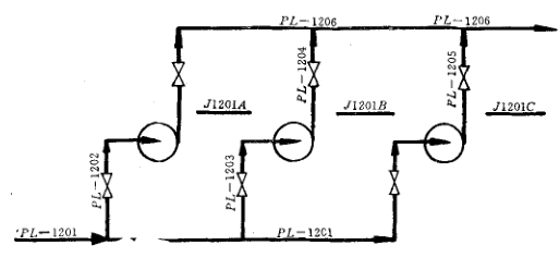 對于互為備用的設備、管件(如泵、過濾器、儀表、旁路等)和并列、大小相同重疊的設備(如并列換熱器等)的接管管道,不屬于采用系列號來編號的范圍。