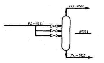 (1)接受設舍的多個接管口用途是相同的,正常時只用一個管口,其余管口為備用口、切換口,只編一個管道號,如塔的進料口,見圖5-7所示。