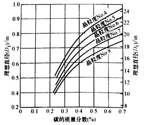 拉蒙特還繪制了其他淬硬深度的類似關系圖,如圖21和圖22所示。需要注意的是,拉蒙特圖是以格羅斯曼的Jd與DI (圖16 c)的對應關系為基礎的,且后來由卡尼(Carney)予以完善。