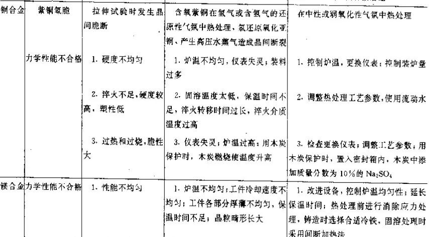 有色金屬因為熱處理不當(dāng),引起力學(xué)性能不合格的常見原因及防止方法見表3。