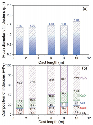 4.4. 夾雜物成分沿鑄坯長度的變化