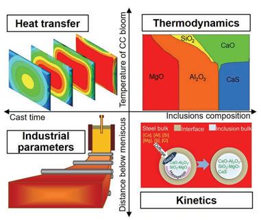 關鍵詞:預測;成分分布;夾雜物;軸承鋼;連鑄大方坯;動力學;熱力學;總氧含量