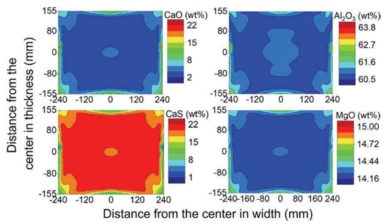 4.5. 鑄坯整個橫截面夾雜物成分的變化