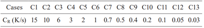 式中α為相變比,%;CR為冷卻速率,K/s。