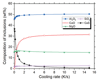 圖17 不同冷卻速率下連鑄坯中夾雜物的組成