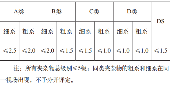 表2 非金屬夾雜物驗收標(biāo)準(zhǔn) (級)