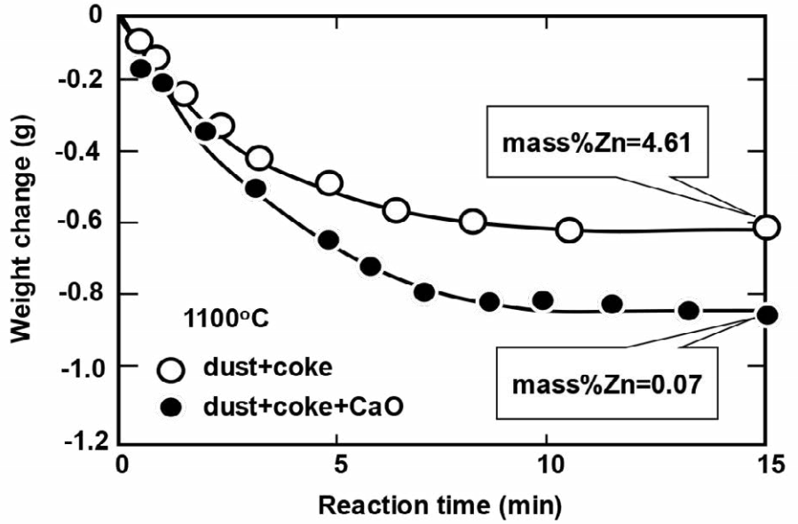 CaO和不含CaO的電弧爐(EAF)粉塵還原實(shí)驗(yàn)結(jié)果