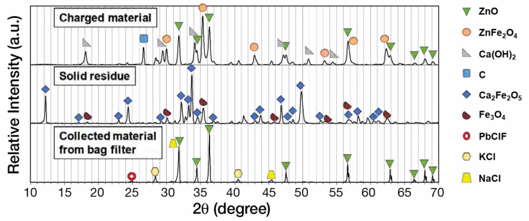 在電弧爐煉鋼行業(yè)中,粉塵處理因其成本高、環(huán)境污染而成為最嚴(yán)重的問題之一,這是鋼鐵行業(yè)可持續(xù)發(fā)展必須解決的關(guān)鍵問題。在實(shí)驗(yàn)室中研究,在1000℃左右溫度條件下加熱電爐粉塵,以及CaO和煤粉,將ZnFe2O4轉(zhuǎn)化為ZnOCa2Fe2O5,并還原形成的ZnO。蒸發(fā)后的鋅作為粗氧化鋅被收集,經(jīng)過(guò)鹵素去除工藝,氧化鋅在減壓下供給碳熱還原工藝過(guò)程。最后,成功回收了高純金屬鋅。