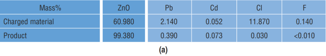 2總結(jié)了步驟2的結(jié)果。步驟2后,只有ZnO信號(hào)被XRD檢測(cè)到,且ZnO純度超過(guò)99%,特別是F含量可以降低到足夠低的水平。
