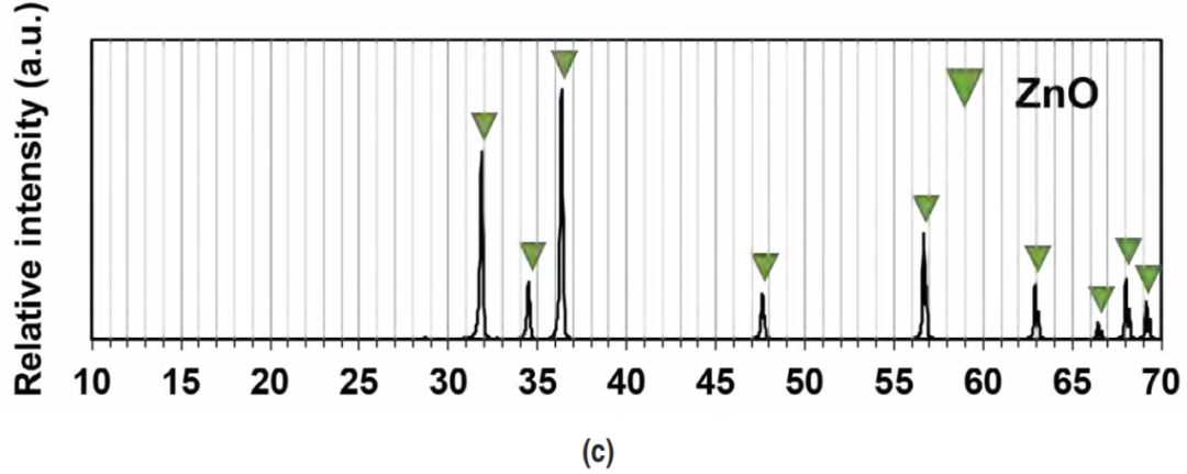 步驟2的結(jié)果摘要:加入原料和產(chǎn)品的成分(a),產(chǎn)品外觀(b)和產(chǎn)品的XRD(c)