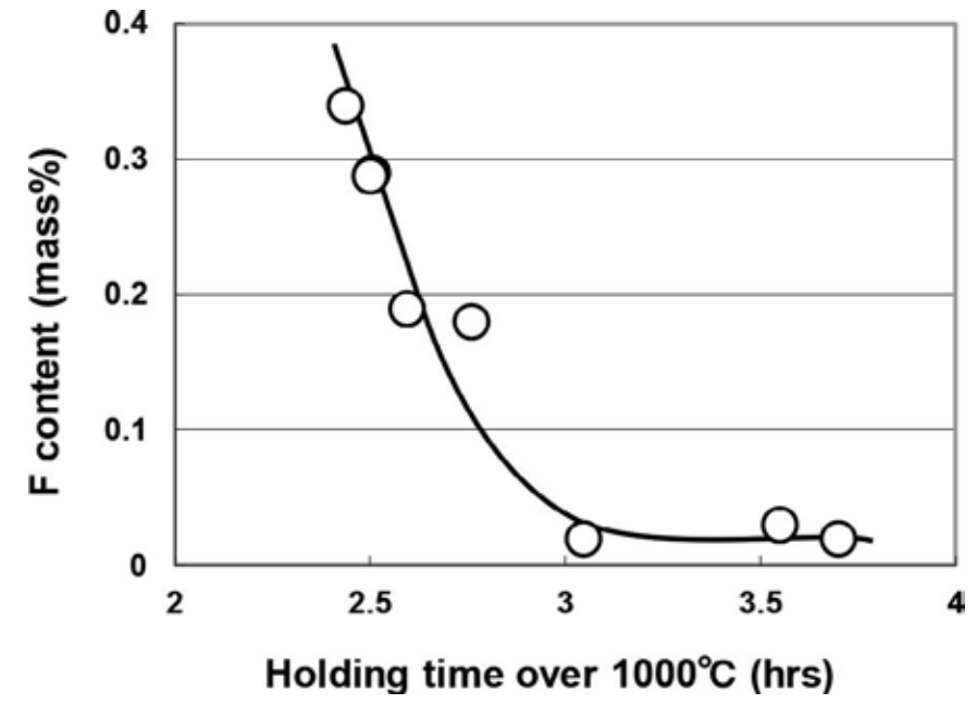 固體殘?jiān)?/span>F含量隨窯內(nèi)保溫時(shí)間的變化