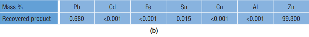 4  280kg鋅錠外觀(a)及步驟3生產(chǎn)的鋅金屬成分(b)