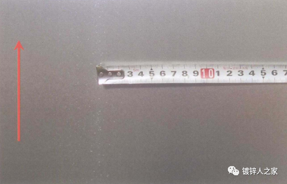 d)仔細看結瘤有一定的方向性,大體與帶鋼運行方向一致,但往往有些偏斜,排成列的顆粒,偏斜方向是一致的,有時輥子兩端結瘤偏斜方向正好相反。