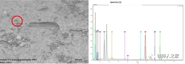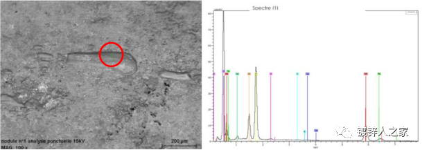 為了找到結瘤產生的根本原因,對結瘤物不同部位進行了能譜分析。