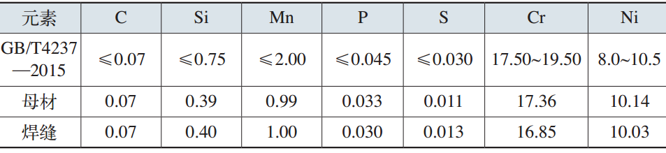 表1 不銹鋼管材料的化學(xué)成分(質(zhì)量分?jǐn)?shù))  (%)