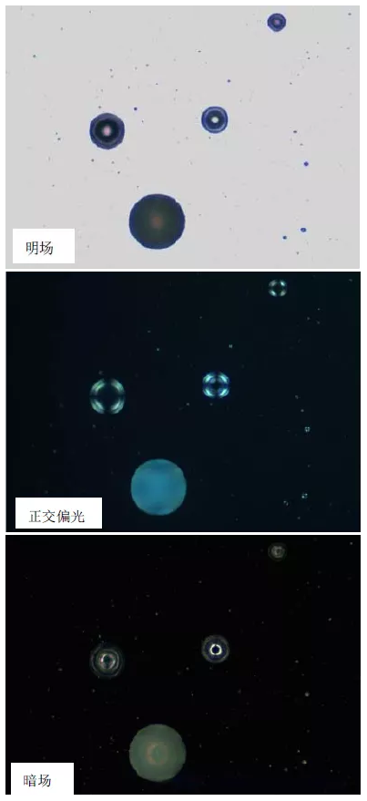 圖中所示為試樣中琉璃質球狀非金屬夾雜物在不同照明方式下通過顯微鏡觀察到的形貌。璀璨若星辰的玻璃質球狀夾雜物在正交偏振光下具有“暗十字”特征,在暗場下呈現“等色環”現象。千里之堤,潰于螞穴。非金屬夾雜物在金屬材料中就充當著這個“小螞蟻”的角色,它時時處處在影響著金屬材料的使用性能,所以材料的凈化也十分重要。
