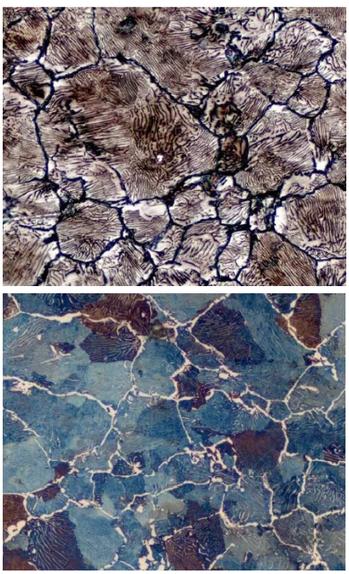 圖7 不同的顯微組織,用同種試劑進行著色顯示,其顏色是不同的。