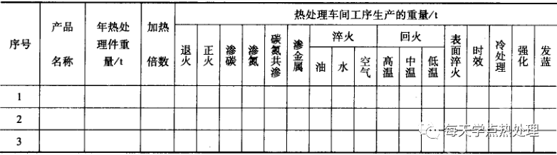 ▼表1 熱處理生產綱領表