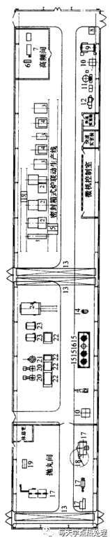 1一箱式電阻爐 2一停火機床 3一井式回火電阻爐 4一中額摔火回火自動線 5一臺車式電阻爐 6-實驗電阻爐 7一描丸機 8-清淀機 9一校直機10一摩擦壓力機 11一水檀 12-癢火池糖 13一循環水槽 14一中頓感應加熱裝置15-體火水槽 16一冷卻水槽 17一工具模床 18一砂輪機19-電焊機 20-油槽 21一橋式起重機 22一旅拉料小車 23一播臂吊架 24一平衡吊 25一平板車 26-硬度計1-上下料臺 2一多用爐 3一箱式間火爐 4一清洗機 5一運料小車 6一淬火機床 7一高頻加熱裝置 8一低溫冰箱 9一真空粹火爐 10一干燥箱11一輝光離子濾氨爐 12一機床 13一橋式起重機 14一校直機 15一井式回火電爐 16一冷卻水槽 17一拋丸機 18一懸骨起重機19-磁粉探傷機 20一鹽浴爐 21-確鹽爐 22一淋火精 23一箱式電照爐 24一臺車式電肌爐