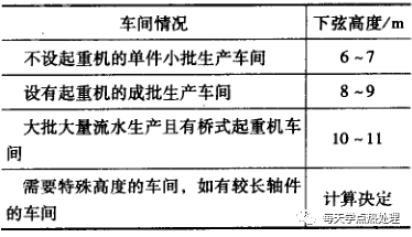 室內地面的高度,分別以屋架下弦底面標高和軌頂標高表示(室內地面標高為±0. 000) 。自地面至柱頂和自地面至支承起重機梁的牛腿面的高度均應為300mm的倍數,自地面至起重機軌頂高應為600mm的倍數。工藝設計通常只提出起重機軌頂的高度要求,此高度可用下式表示: