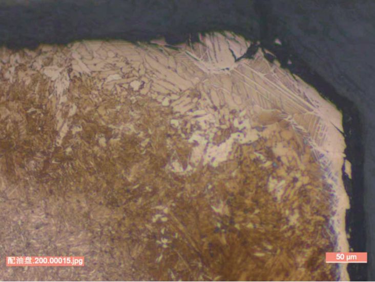 (1)該批配油盤尖角棱邊處氮化物超標,造成脆性嚴重,需報廢處理。