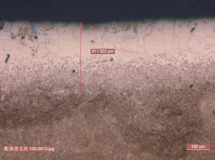 下一步將對調質態毛坯樣件進行分析,以查找表面脫碳層產生的原因。