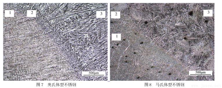 如果宏觀(guān)沒(méi)有發(fā)現(xiàn)焊縫,可以使用顯微鏡檢測(cè)。沒(méi)有經(jīng)過(guò)焊接的顯微組織,熱軋帶狀組織、孿晶組織、等軸晶粒等具有連續(xù)性。經(jīng)過(guò)焊接的鋼管,焊接組織形貌特征明顯。不銹鋼一般有敏化區(qū)、焊縫區(qū)、熔合區(qū)、母材四個(gè)區(qū)域,參見(jiàn)圖3。