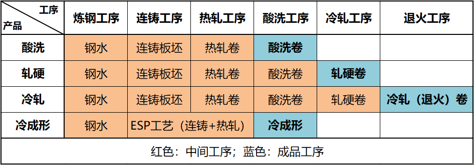 酸洗、軋硬、冷軋產(chǎn)品是傳統(tǒng)生產(chǎn)工藝中不同階段的產(chǎn)物,酸洗是熱軋去氧化皮的產(chǎn)品,軋硬是冷軋退火前的產(chǎn)品。
