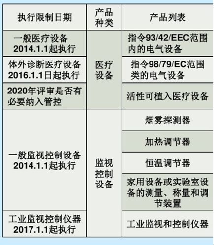 注:2016年1月21日,中國工信部正式公布了新版的《電器電子產品有害物質限制使用管理辦法》(亦稱中國RoHS 2.0),于2016年7月1日實施,用于取代之前的《電子信息產品污染控制管理辦法》(ACPEIP或中國RoHS 1.0)。RoHS 2.0將適用產品范圍從RoHS 1.0的“電子信息產品”(EIP)擴展到“電器電子產品”(EEP)。