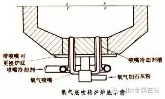 通過轉爐底部的氧氣噴嘴把氧氣吹入爐內熔池,使鐵水冶煉成鋼的轉爐煉鋼方法。其特點是;爐子的高度與直徑比較小;爐底較平并能快速拆卸和更換;用風嘴、分配器系統和爐身上的供氧系統代替氧氣頂吹轉爐的氧槍系統。由于吹煉平穩、噴濺少、煙塵量少、渣中氧化鐵含量低,因此氧氣底吹轉爐的金屬收得率比氧氣頂吹轉爐的高1%~2%;采用粉狀造渣料,由于顆粒細、比表面大,增大了反應界面,因此成渣快,有利于脫硫和脫磷。此法特別適用于吹煉中磷生鐵,因此在西歐用得最廣。