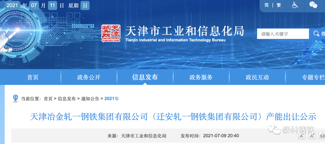按照《國務(wù)院關(guān)于化解產(chǎn)能嚴(yán)重過剩矛盾的指導(dǎo)意見》《國務(wù)院關(guān)于鋼鐵行業(yè)化解過剩產(chǎn)能實現(xiàn)脫困發(fā)展的意見》和《鋼鐵行業(yè)產(chǎn)能置換實施辦法》要求,天津冶金軋一鋼鐵集團(tuán)有限公司(遷安軋一鋼鐵集團(tuán)有限公司)產(chǎn)能出讓情況予以公示,歡迎社會公眾進(jìn)行監(jiān)督。聯(lián)系電話:23313526。公示期為20個工作日。