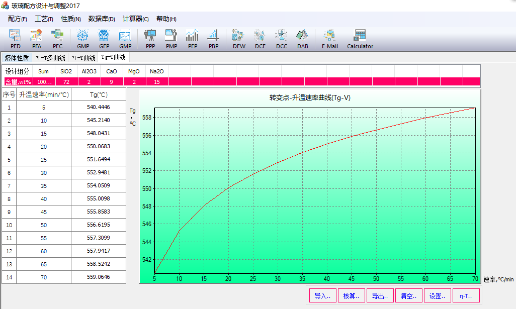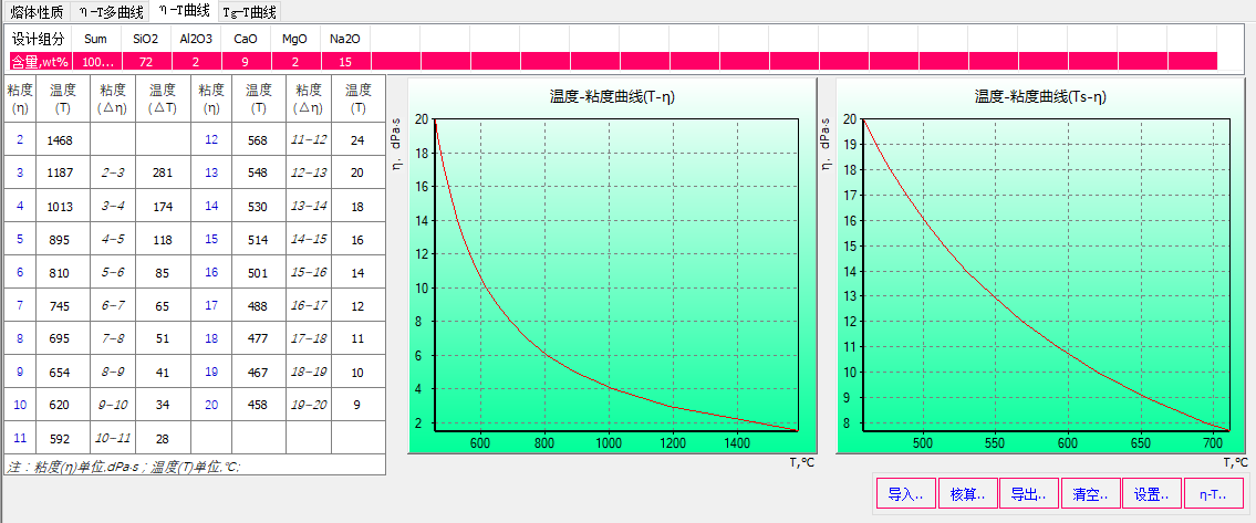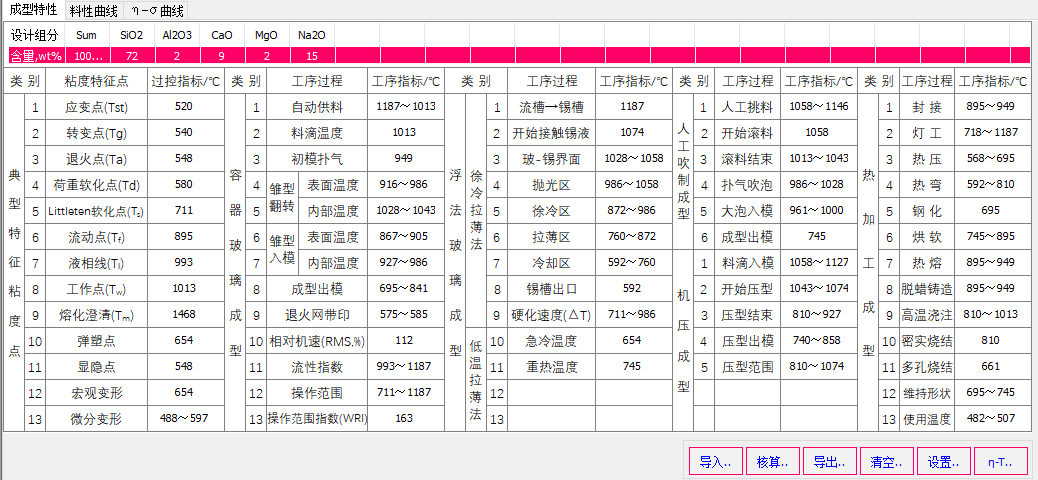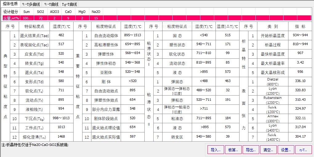 圖 2根據(jù)玻璃設(shè)計(jì)組成核算玻璃退火相關(guān)溫度點(diǎn)和粘滯狀態(tài)對(duì)應(yīng)的溫度