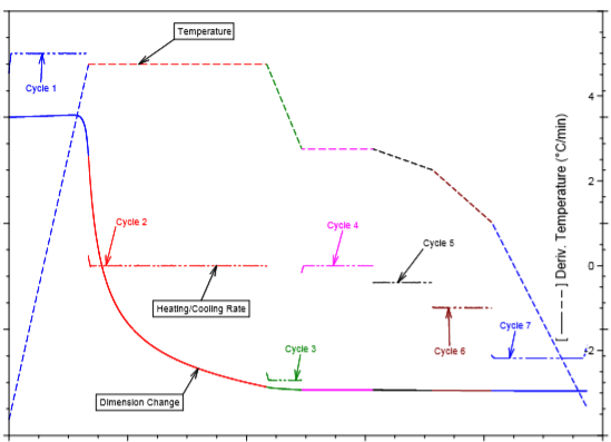 * 玻璃在高溫下施加壓力時(shí)的形變情況,如線熱膨脹系數(shù)隨溫度的變化情況、膨脹量與形變量情況等;