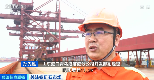 山東港口青島港前港分公司開發(fā)部副經(jīng)理 孫先勝:今年1-5月份,青島口岸的鐵礦石進(jìn)口量比去年同比增長11.1%。
