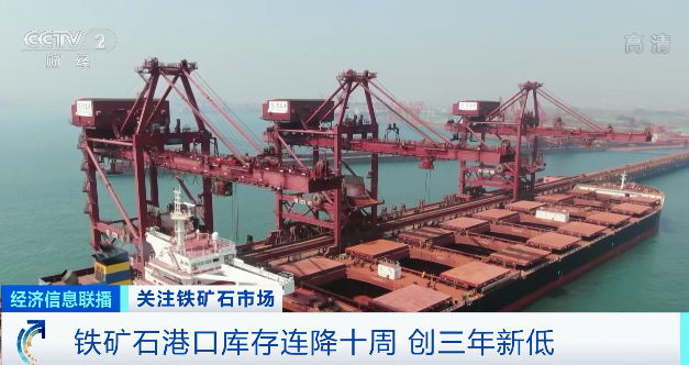 鐵礦石港口庫存連降十周 創(chuàng)三年新低