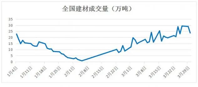本周開(kāi)局,隨著鋼價(jià)的拉漲,市場(chǎng)成交熱情回升,周一全國(guó)建材成交量一度接近30萬(wàn)噸的高位,但隨著價(jià)格上漲,高價(jià)成交謹(jǐn)慎,投機(jī)性需求下降,市場(chǎng)按需采購(gòu)為主,但仍保持在20萬(wàn)噸的平均水平之上。反映市場(chǎng)有小幅回落的壓力,但調(diào)整空間不大。