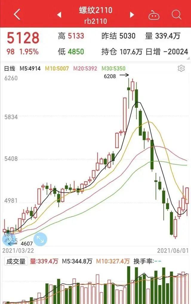 最近,我身邊發生了兩件事,說起來都和鋼材有關系。一個是建筑公司的同學,說前幾天質檢站來他們工地驗收,結果出事了。原因是設計圖紙是樓板應該用三級6的鋼筋,但是實際施工時,全是用一級6代替的。工地為此停工了。這個朋友很委屈,說不怪他們,原因是市場上三級6鋼筋根本買不到,用一級6時跟甲方說了,甲方當時什么也沒說,等于默認了,現在又發生了這樣的事!還有一個親戚,開機械加工廠的,半個多月前就停工了,說鋼材天天漲價,他們小本生意,利潤微薄,根本承擔不起原材料這么高的漲速,只好停產觀望一下,等鋼價穩定了再說。以上兩件事,雖然微不足道,但是也從側面反映了鋼價大漲對社會相關行業的嚴重影響。鋼材號稱“工業糧食“,是下游用鋼制造業,比如船舶、汽車、家電、電梯等重要的原材料,同時與鋼材相關的還有很多行業,比如建筑業等等。所以,鋼價非常敏感,可謂牽一發而動全身。其實鋼價這輪牛市,從3月份就開始啟動了,但是從五一過后,開始了一波凌厲的漲勢,才引起了大家的注意。以螺紋2110期貨為例,從日K線圖我們看到,5月12日左右達到高點6208。之后監管發聲,鋼價應聲暴跌,十多個交易日內,從高點下跌了達20%左右。但是,鋼價上漲是國內外多方面因素造成的。國外方面,美聯儲大放水,導致全球流動性泛濫,大宗商品暴漲,包括鋼材在內的期貨也難以幸免。進口的鐵礦石大幅漲價,焦煤、焦炭和廢鋼等鋼鐵主要原料也全部上漲,這些都推高了鋼鐵生產成本。國內方面,我國經濟持續穩定恢復,實體經濟全面復蘇,用鋼需求量顯著增加。根據中鋼協的數據,今年對鋼材的需求量中,建筑業增長了49%,制造業增長了44%。另一方面受碳中和、碳達峰等政策的影響,有的鋼廠減產。這樣,國內的鋼材供需就出現了一個顯著的矛盾:需求增加,供給卻減少了!以上的種種因素疊加,導致鋼價內在的上漲動能還是比較強勁的。其實,當前國內的鋼價和國外的鋼價存在巨大的剪刀差。舉例來說,5月中旬,美國中西部鋼廠熱軋卷板的價格相當于人民幣10570元/噸,這個價格比中國市場足足高了4800元幣/噸。從5月27日開始,鋼材期貨開始強勁反彈,還以螺紋2110期貨為例,連漲4個交易日,6月1日,又收漲1.95%,收于5128元/噸,從低點反彈了10%。這個時候,監管部門再次出手了!上期所大幅調整螺紋鋼等相關合約手續費,比如螺紋鋼期貨Rb2110合約日內平今倉交易手續費由成交金額的萬分之二調整為成交金額的萬分之三。調整幅度不可謂不大,由此可見,國家穩定鋼價的決心是非常堅定的。當前來自監管方面的信號持續增強,市場投機行為被強力打壓。展望后市,鋼價有望回到一個常態化的價格水平。其實對于鋼價這么重要的行業,真不能放任由“市場先生”來掌控,適當的管制是必要的,鋼價穩定了,對實體經濟,尤其制造業來說是個大利好。