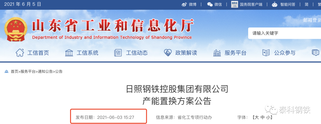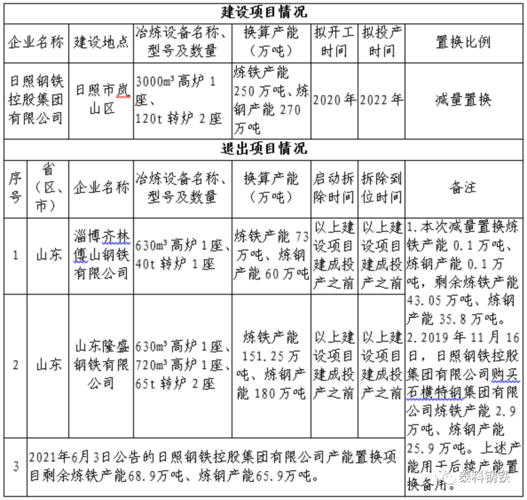 2021年6月3日,山東省工業與信息化廳官網發布《日照鋼鐵控股集團有限公司產能置換方案公告》,據目前小編查詢到的情況,這是6月1日修訂后的《鋼鐵行業產能置換實施辦法》正式實施以來的第一個產能置換方案公告!涉及日照鋼鐵、廣富、傳洋等6家鋼企!置換后的煉鐵、煉鋼產能合計達1620萬噸!
