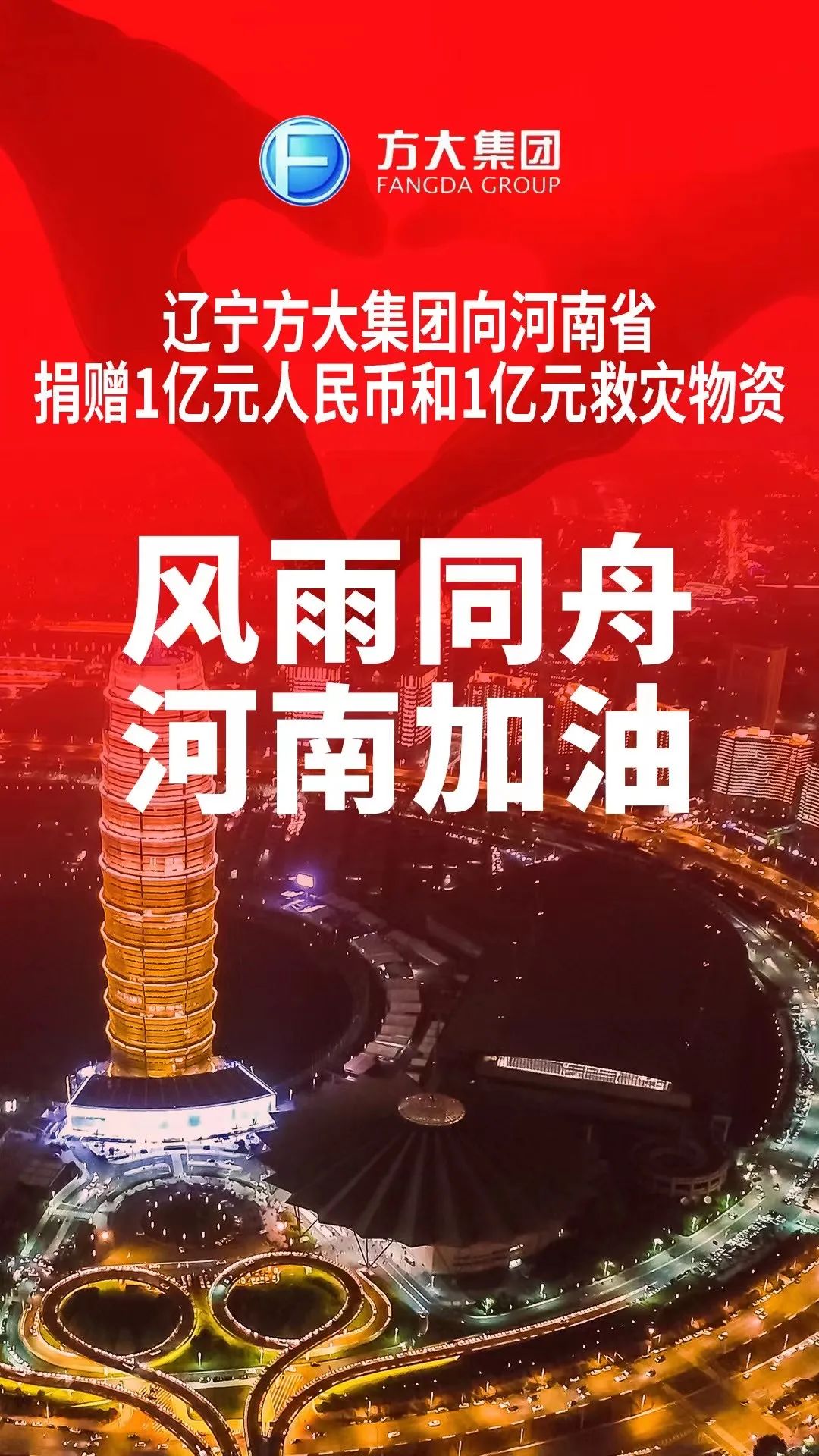 遼寧方大集團捐贈現金1億元、價值1億元的應急救援物資