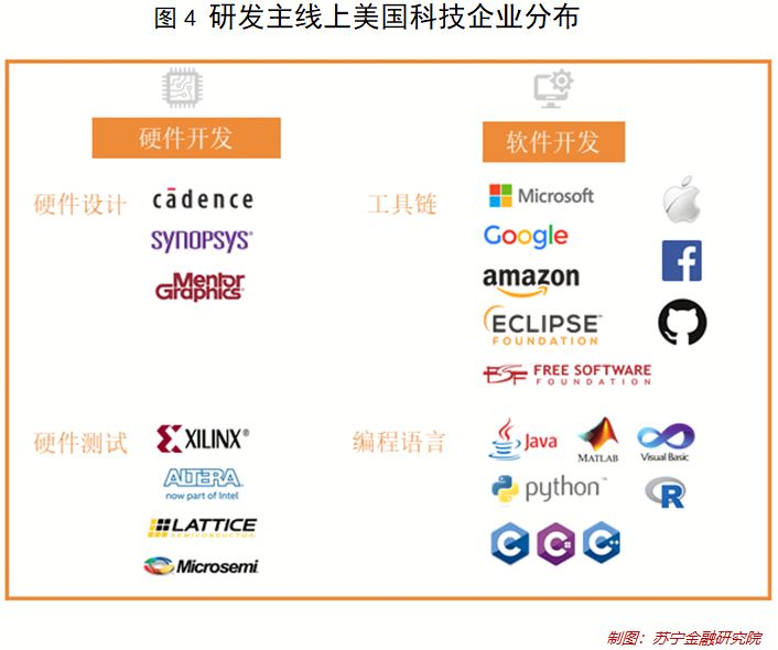 研發主線主要分析的是產品在設計階段所需要的工具,這些工具往往是由一些專門從事工具類產品研發的科技公司和機構提供的。下面我們來梳理一下相應的研發工具所涉及的美國科技公司。