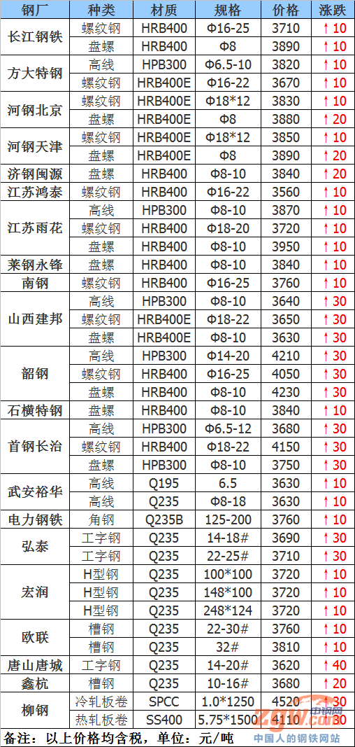 鋼廠調(diào)價(jià):22家鋼廠調(diào)價(jià)了!還在漲!