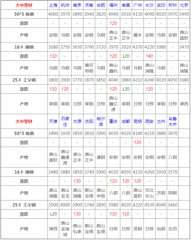 據(jù)數(shù)據(jù)監(jiān)測(cè),昨日共26家鋼廠調(diào)價(jià),其中漲幅最高為唐城工字鋼,調(diào)價(jià)幅度40元/噸,具體調(diào)價(jià)明細(xì)如下: