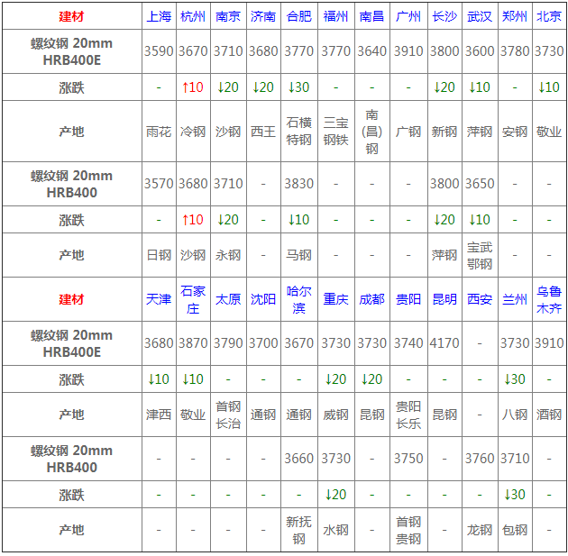 7月20日建材價格:震蕩偏弱;