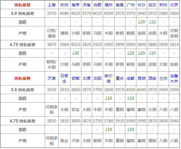 7月20日熱軋板卷價格:窄幅調整;