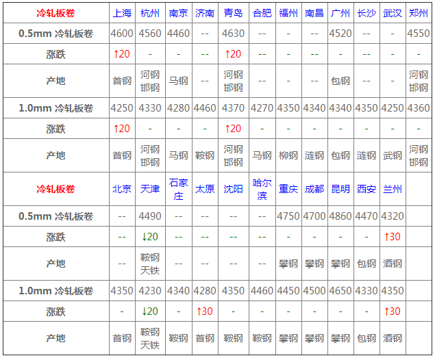 7月20日冷軋板卷價格:以穩為主,適當下調;