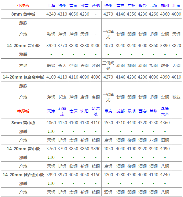 今日中厚板市場價格平穩運行。從了解的情況來看,終端詢盤氛圍尚可,整體出貨量好壞均有,表現不一,受期貨調整震蕩,市場操作趨謹慎,商家持觀望心態,壓力尚不明顯,綜以上情況來看,短期價格或保持穩中整理,調整幅度有限。