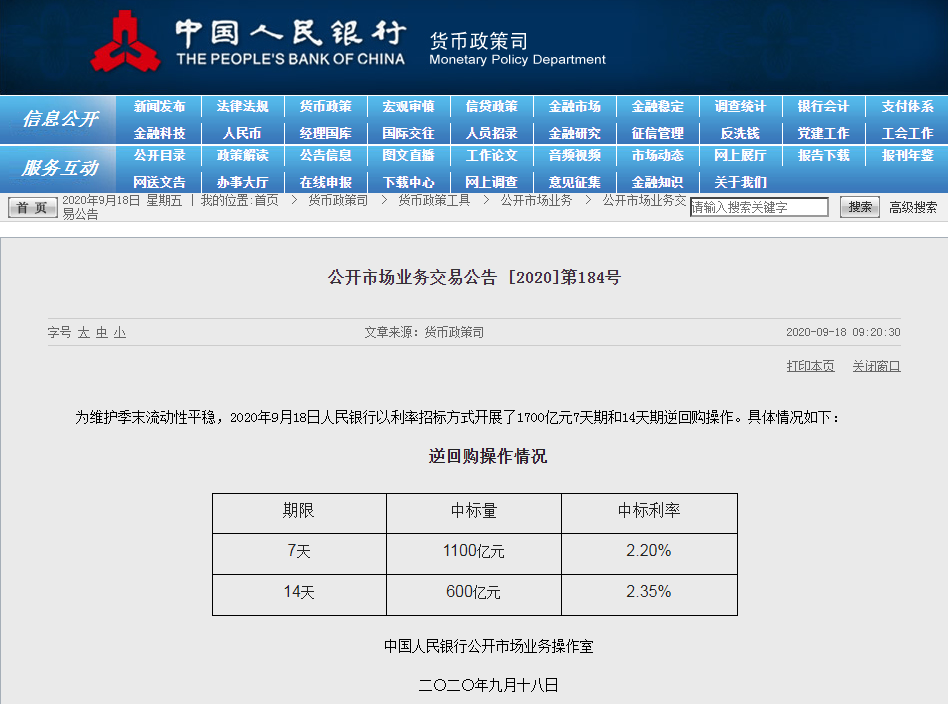 央行本周凈投放2600億