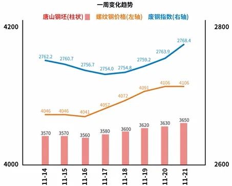 本周大部分地區建筑鋼價繼續上行,其中南方地區漲幅較大,北方地區價格波動有限。時值11月中下旬,受季節性因素影響,北方市場成交漸行漸弱;南方秋高氣爽,需求保持一定韌性。